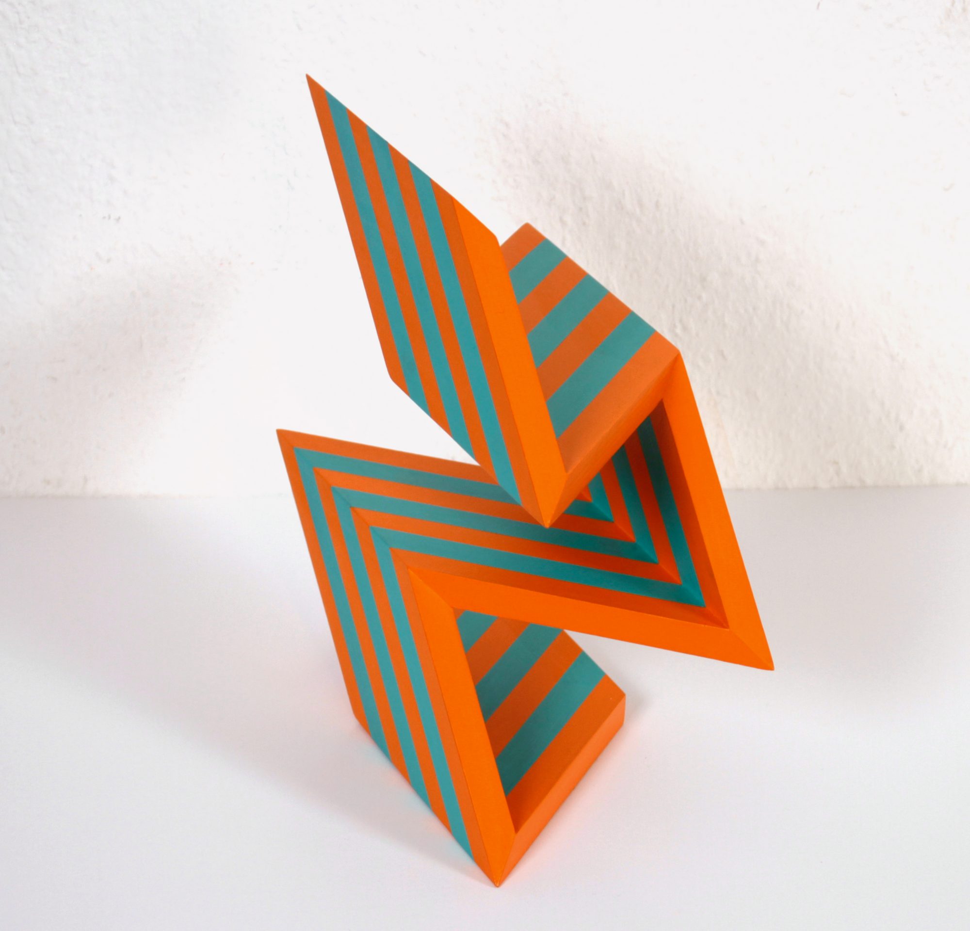 Form, color, and material are translated into space. Each sculpture stands in direct relation to an underlying series or question. This section serves to make visible how two-dimensional orders can be translated into physical structures.