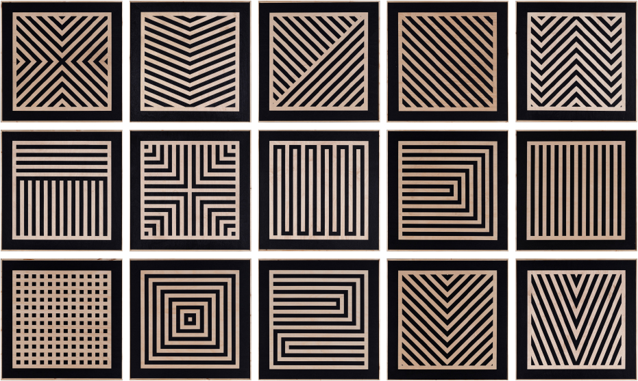 Der Zyklus existiert in unterschiedlichen thematischen Ausprägungen, jeweils fokussiert auf ein formales System. Alle Arbeiten sind auf Holz ausgeführt und folgen einem einheitlichen Format von 60 × 60 cm. So entsteht ein kontrolliertes Feld, in dem formale Energie vergleichbar und präzise wahrnehmbar wird.