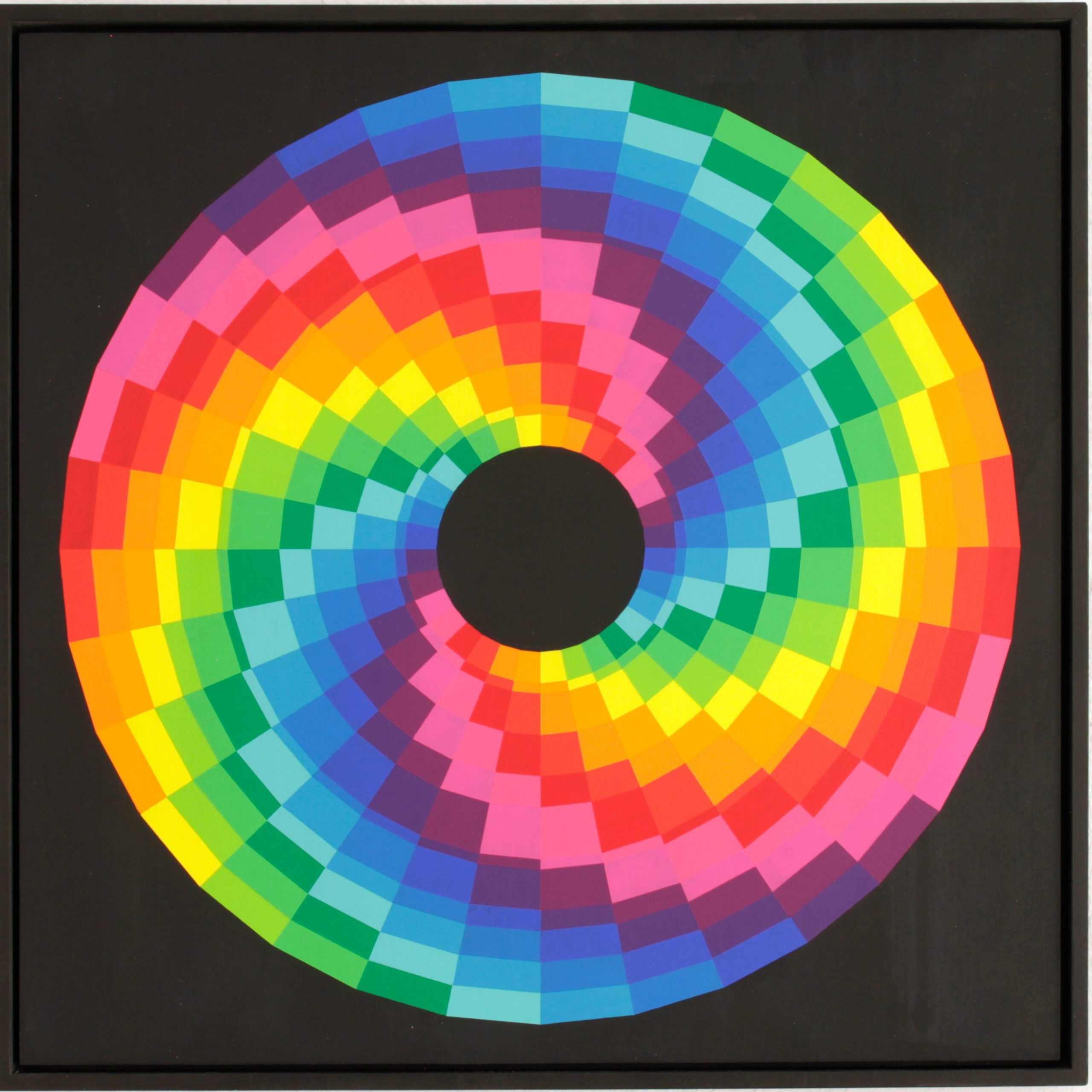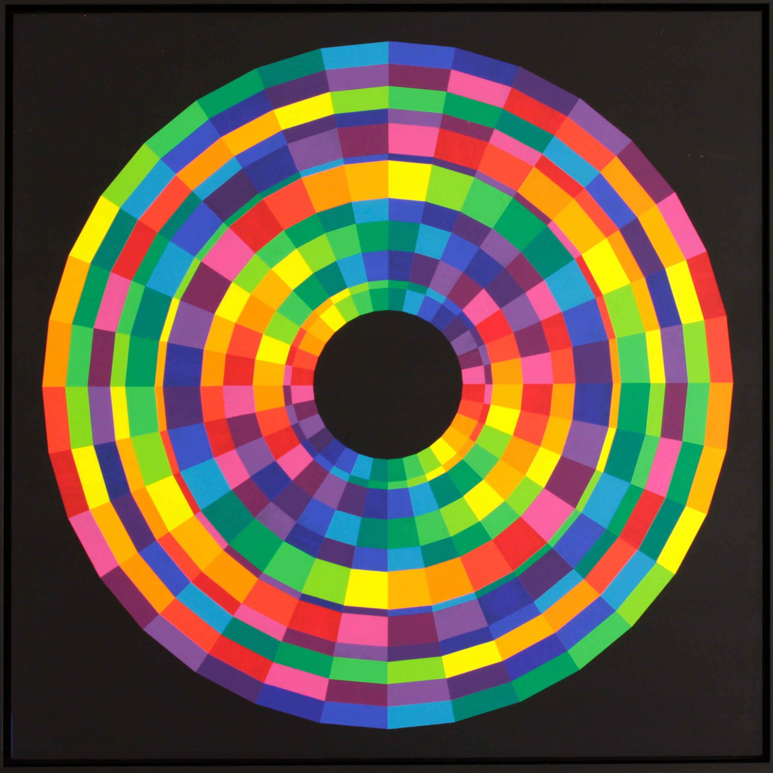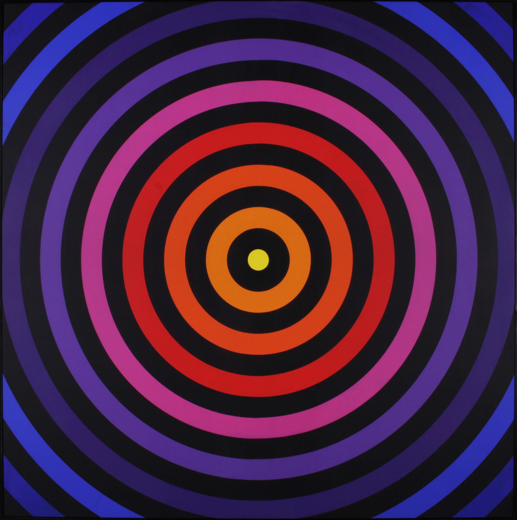 Zoom examines the centered, point-oriented image as a perceptual structure. The works operate with forms and color gradients that consistently relate to a central point.